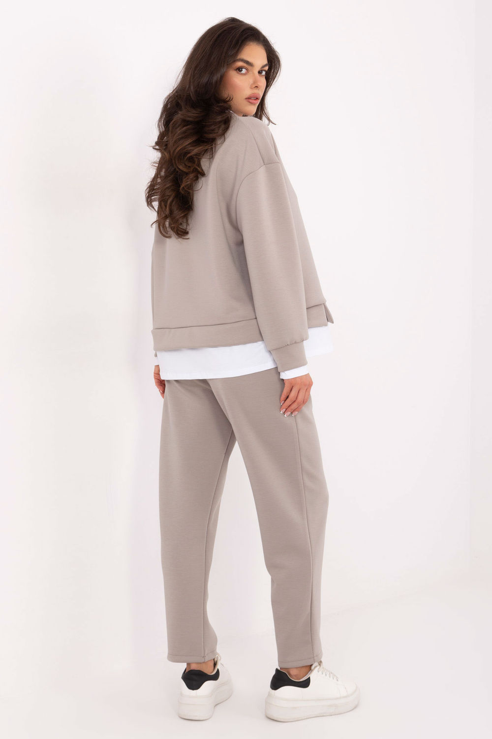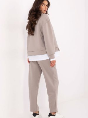 Γυναικείο σύνολο casual φτιαγμένο από υλικό τύπου βούτυρο μαλακό, απαλό και ιδιαίτερα ευχάριστο στην αφή. Το σετ αποτελείται από μπλούζα με στρογγυλή λαιμόκοψη και παντελόνι ψηλής μέσης, δημιουργώντας μια άνετη και στυλάτη εμφάνιση για καθημερινή χρήση. Η μπλούζα διαθέτει μακριά μανίκια, λαιμόκοψη και κάτω μέρος με επένδυση από αντίθετο ύφασμα καθώς και μια διακριτική εφαρμογή. Το παντελόνι με ίσιες γραμμές διαθέτει ψηλή μέση με κορδόνι και πλευρικές τσέπες, εξασφαλίζοντας άνεση και μοντέρνα γραμμή. Ο ομοιόμορφος σχεδιασμός και ο συνδυασμός βισκόζης με ελαστάνη εγγυώνται απαλότητα, ελαστικότητα και ελευθερία κινήσεων. Είναι ένα σύνολο ιδανικό για καθημερινές εξόδους, που συνδυάζει άνεση, κομψότητα και casual στυλ.