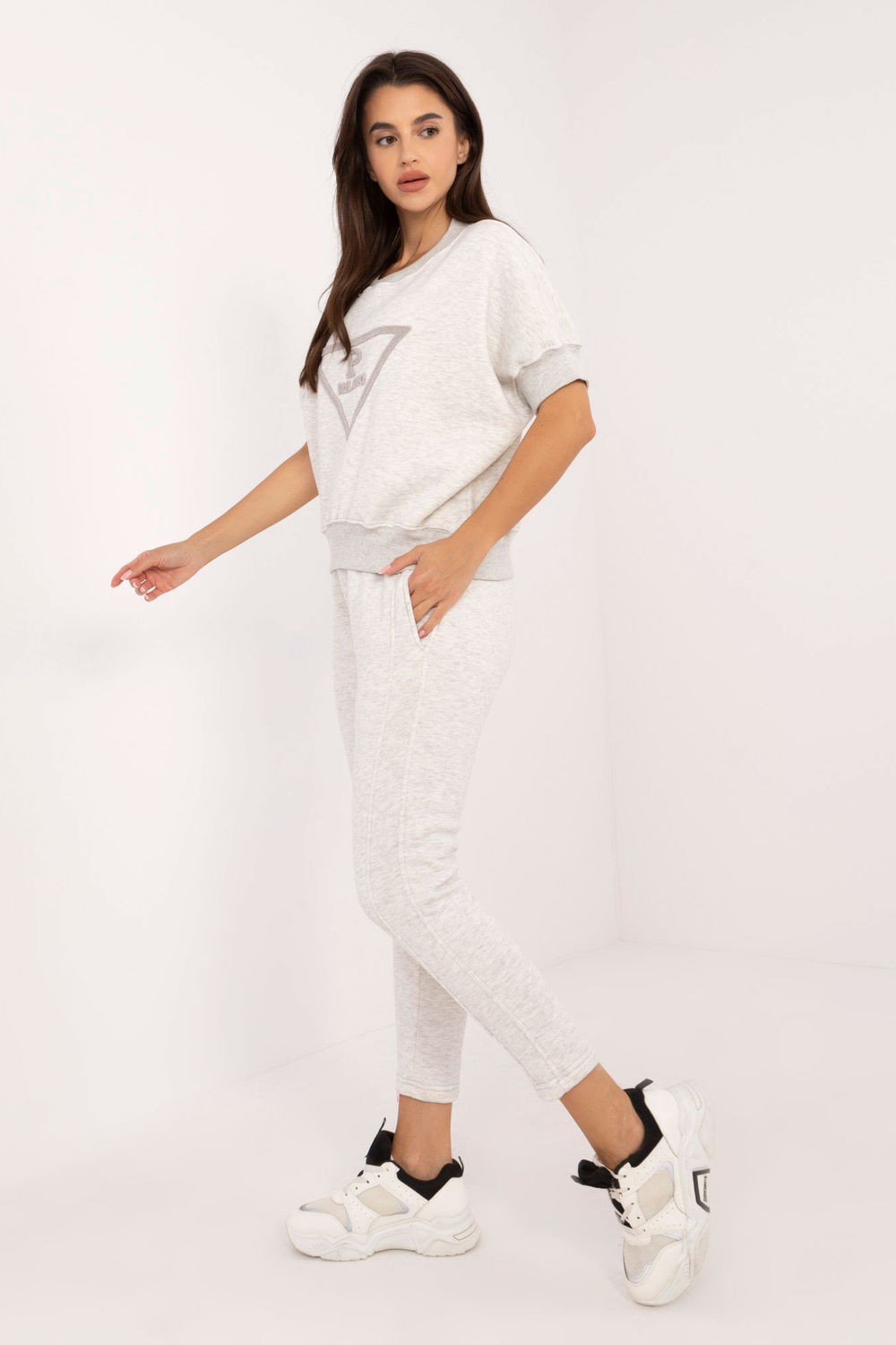 Ένα μονωμένο γυναικείο σετ φόρμας casual στυλ, ιδανικό για τις πιο κρύες ημέρες, που αποτελείται από φούτερ και παντελόνι. Κατασκευασμένο από συνδυασμό βαμβακιού και πολυεστέρα, το σετ παρέχει ζεστασιά, άνεση και ανθεκτικότητα, ιδανικό για καθημερινό στυλ. Το φούτερ κανονικού μήκους έχει κοντά μανίκια και στρογγυλή λαιμόκοψη, δίνοντάς του μια ελαφριά και casual αίσθηση, παρά τη ζεστασιά. Στο μπροστινό μέρος της μπλούζας υπάρχει ένα μοντέρνο σχέδιο, το οποίο προσθέτει πρωτοτυπία και μια νεανική πινελιά στο σετ. Ο ομαλός σχεδιασμός διατηρεί μια μινιμαλιστική, ευέλικτη εμφάνιση, που συνδυάζεται εύκολα με άλλα είδη ένδυσης. Το παντελόνι έχει κωνικά πόδια και ψηλή μέση για να τονίζει τη σιλουέτα και να εξασφαλίζει άνεση. Υπάρχει ελαστική ζώνη στη μέση για να εγγυάται τέλεια εφαρμογή. Επιπλέον, το παντελόνι είναι εξοπλισμένο με πλαϊνές ολισθαίνουσες τσέπες, καθιστώντας το μια πρακτική επιλογή για καθημερινή χρήση. Αυτό το σετ είναι ο τέλειος συνδυασμός άνεσης και στυλ για τις κρύες, καθημερινές ημέρες.