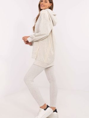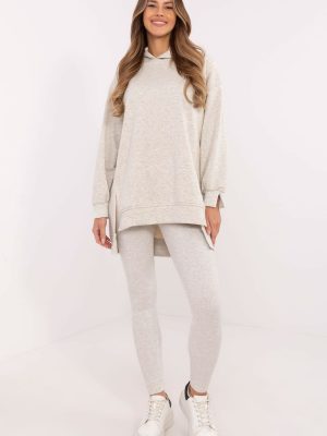 Το γυναικείο σετ που αποτελείται από μακρύ φούτερ και κολάν είναι ιδανική επιλογή για γυναίκες που εκτιμούν την άνεση και το στυλ στα καθημερινά τους ρούχα. Διατηρώντας έναν casual χαρακτήρα, θα είναι ιδανικό για μια βόλτα, για ψώνια ή για χαλάρωση στο σπίτι. Το φούτερ έχει εκτεταμένη πλάτη για μοντέρνα εμφάνιση και επιπλέον άνεση. Κατασκευασμένο από μείγμα βαμβακιού και πολυεστέρα, προσφέρει ευχάριστη αίσθηση και ανθεκτικότητα. Με κουκούλα και μακριά μανίκια, είναι ιδανική για να κρατάει το κρύο μακριά τις πιο κρύες μέρες. Το κολάν, με κωνικά πόδια και ψηλό ύψος, τονίζει τη σιλουέτα, ενώ επιτρέπει την ελευθερία κινήσεων. Κατασκευασμένο από βαμβάκι με προσθήκη ελαστάνης, εφαρμόζει τέλεια στο σώμα. Το ύφασμα με ραβδώσεις προσδίδει χαρακτήρα και τα ξεχωρίζει από άλλα μοντέλα. Όλα σε ομοιόμορφο μονόχρωμο μοτίβο, που σας επιτρέπει να συνδυάζετε εύκολα τα αξεσουάρ και να δημιουργείτε μια συνεκτική καθημερινή εμφάνιση.