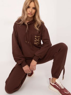 Ένα κομψό σετ φόρμας, αποτελούμενο από φούτερ και παντελόνι, ιδανικό για καθημερινές περιστάσεις. Κατασκευασμένο από βαμβάκι υψηλής ποιότητας με μια πινελιά ελαστάν, προσφέρει άνεση, ευελιξία και αναπνοή, ιδανικό για δραστήριες ημέρες. Η μπλούζα με στρογγυλή λαιμόκοψη διαθέτει μια πρακτική τσέπη στο μπροστινό μέρος, διακοσμημένη με μια μοντέρνα αλυσίδα, η οποία προσθέτει μια πρωτότυπη πινελιά στο σετ. Το ψηλόμεσο παντελόνι με τις πλαϊνές τσέπες που μπαίνουν στο παντελόνι είναι άνετο και λειτουργικό, ενώ τα πόδια με κορδόνι εγγυώνται τέλεια εφαρμογή. Το απαλό μοτίβο καθιστά το σετ ευέλικτο και εύκολο να συνδυαστεί με άλλα είδη ένδυσης. Είναι η ιδανική επιλογή για τις γυναίκες που εκτιμούν τον συνδυασμό άνεσης και κομψής εμφάνισης στην καθημερινή τους ένδυση.