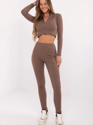 Το γυναικείο casual σετ από ραβδωτό υλικό είναι η ιδανική πρόταση για καθημερινές, άνετες εμφανίσεις. Το σετ περιλαμβάνει ένα κοντό φούτερ με γιακά, μακριά μανίκια και πρακτικό κλείσιμο με φερμουάρ, καθώς και παντελόνια με μακριά, στενά πόδια και ψηλή μέση. Το σετ είναι κατασκευασμένο από μαλακό, ελαστικό ύφασμα από βαμβάκι και ελαστάνη, που εξασφαλίζει άνεση κατά την φθορά και ελευθερία κινήσεων. Ο λείο σχέδιο και η ραβδωτή υφή του υλικού προσδίδουν μια μοντέρνα, μινιμαλιστική εμφάνιση. Η απουσία τσεπών τονίζει τον αθλητικό-αστικό χαρακτήρα του σετ, ενώ η εφαρμοστή γραμμή κάνει το σετ να εφαρμόζει τέλεια στη σιλουέτα. Είναι εξαιρετική επιλογή για καθημερινή χρήση, ιδανική για βόλτες, ψώνια ή χαλάρωση στο σπίτι. Στυλάτο, λειτουργικό και εξαιρετικά άνετο.
