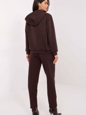 Μια κομψή αθλητική φόρμα που αποτελείται από μπλούζα και παντελόνι, ιδανική για καθημερινές, casual στυλιστικές επιλογές. Κατασκευασμένη από υψηλής ποιότητας βισκόζη με ποικιλόμορφη υφή, από μαλακό, απαλό και ιδιαίτερα ευχάριστο στην αφή υλικό, που εγγυάται μέγιστη άνεση κατά τη διάρκεια της χρήσης. Η μπλούζα διαθέτει μακρύ μανίκι και πρακτική κουκούλα, ενώ το μπροστινό μέρος διακοσμείται με διακοσμητική ραφή, που προσδίδει στη συνολική εμφάνιση μοντέρνο χαρακτήρα. Το μοντέλο κλείνει με φερμουάρ, προσθέτοντας άνεση στη χρήση. Στο ύψος του στήθους υπάρχουν τσέπες με καπάκια, διακοσμημένες με κομψές μπροσούρες, που προσθέτουν διακριτική πρωτοτυπία και στυλάτο φινίρισμα. Το παντελόνι έχει ψηλή μέση, στενά μπατζάκια και ελαστική ταινία στη μέση με επιπλέον κορδόνι, εξασφαλίζοντας τέλεια εφαρμογή και άνεση. Διαθέτει επίσης πλάγιες τσέπες, καθιστώντας το πρακτικό για καθημερινή χρήση. Τα μπατζάκια είναι μακριά, άνετα και κάθονται τέλεια στη σιλουέτα. Το σετ εντυπωσιάζει με την συνδυαστική άνεση, λειτουργικότητα και μοντέρνες λεπτομέρειες, ιδανικό για γυναίκες που εκτιμούν την κομψή εμφάνιση σε casual έκδοση.