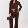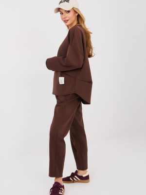 Το γυναικείο σετ φόρμας, που αποτελείται από φούτερ και παντελόνι, είναι η ιδανική πρόταση για καθημερινές casual εμφανίσεις, συνδυάζοντας άνεση με μινιμαλιστικό σχέδιο. Η απλή γραμμή καθιστά το σετ μοναδικό και ιδανικό τόσο για το σπίτι όσο και για βόλτες στην πόλη ή περιπάτους. Το σετ είναι κατασκευασμένο από υψηλής ποιότητας μείγμα πολυεστέρα, βισκόζης και ελαστάνης. Το ύφασμα είναι εξαιρετικά μαλακό, λεπτό και πολύ ευχάριστο στην αφή, εξασφαλίζοντας μέγιστη άνεση κατά την εφαρμογή. Το φούτερ με μακρύ μανίκι και κλασικό στρογγυλό λαιμόκοψη διαθέτει διακριτική ραφή τοποθετημένη στο κάτω μέρος μπροστά αριστερά, που προσθέτει μια μοντέρνα αίσθηση στο σύνολο. Το παντελόνι με μήκος κανονικό και στενές μανσέτες προσαρμόζεται τέλεια στη σιλουέτα. Η υψηλή μέση και οι κορδόνες που δένονται στη μέση επιτρέπουν τέλεια εφαρμογή, ενώ οι πλάγιες, ανοικτές τσέπες αυξάνουν τη λειτουργικότητα του σετ.