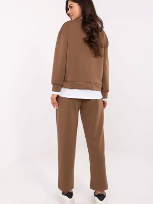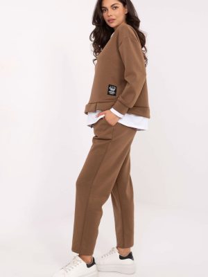 Γυναικείο σετ καθημερινής χρήσης φτιαγμένο από ύφασμα τύπου βούτυρο, μαλακό, λεπτό και εξαιρετικά ευχάριστο στην αφή. Το σετ αποτελείται από μπλούζα με στρογγυλή λαιμόκοψη και παντελόνι με ψηλή μέση, δημιουργώντας μια άνετη και στυλάτη εμφάνιση για καθημερινές περιστάσεις. Η μπλούζα διαθέτει μακριά μανίκια, λαιμόκοψη και κάτω μέρος ραμμένα με αντίθετο ύφασμα, καθώς και διακριτική εφαρμογή. Το παντελόνι με ίσιες γραμμές είναι εξοπλισμένο με ψηλό λάστιχο και τσέπες στα πλάγια, προσφέροντας άνεση και μοντέρνο στιλ. Η λεία ύφανση και ο συνδυασμός βισκόζης με ελαστάνη εγγυώνται απαλότητα, ελαστικότητα και ελευθερία κινήσεων. Αυτό το σετ είναι ιδανικό για καθημερινές εξόδους, συνδυάζοντας άνεση, κομψότητα και casual στυλ.