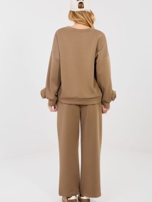 Μια κομψή γυναικεία σετ που αποτελείται από μπλούζα και παντελόνι, ιδανικό για καθημερινές στιλιστικές επιλογές σε casual ύφος. Κατασκευασμένο από μαλακό και ευχάριστο στην αίσθηση βισκόζ, με προσθήκη ελαστάνης, που διασφαλίζει άνεση κατά την χρήση καθώς και ελευθερία κινήσεων για όλη την ημέρα. Η μπλούζα σε μακριά μήκος διαθέτει στρογγυλή λαιμόκοψη και μακρύ μανίκι, διακοσμημένο με μια υποκείμενη υφασμάτινη τριανταφυλλιά στον καρπό, η οποία προσθέτει στην εμφάνιση έναν γυναικείο και πρωτότυπο χαρακτήρα. Το παντελόνι με ψηλή μέση και ίσια πόδια εγγυάται άνεση και διαχρονική εμφάνιση. Στη μέση χρησιμοποιείται ραμμένο λάστιχο και κορδόνια για να επιτρέπεται η ιδανική προσαρμογή στο σώμα. Ένα επιπλέον πλεονέκτημα είναι οι πλαϊνές τσέπες, που αυξάνουν τη λειτουργικότητα του σετ. Το λείο σχέδιο καθιστά το σετ ευέλικτο και εύκολο στο στυλ, ιδανικό τόσο για βόλτες όσο και για καθημερινές εμφανίσεις. Αυτή είναι μια πρόταση για γυναίκες που εκτιμούν την άνεση, το στυλ και τις διακριτικές λεπτομέρειες.