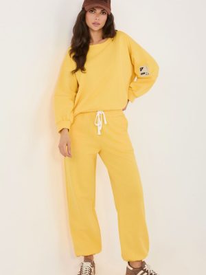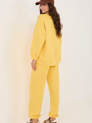 Το σετ φόρμας που αποτελείται από μια μπλούζα και παντελόνι είναι η ιδανική πρόταση για καθημερινή χρήση για άτομα που εκτιμούν την άνεση και το μοντέρνο στυλ. Ο λείος σχεδιασμός καθιστά το σετ καθολικό και εύκολο στην στιλιστική του εφαρμογή, αποδεικνύοντας την αποτελεσματικότητα τόσο στο σπίτι όσο και εκτός αυτού. Η μπλούζα με μακριά μανίκια και κλασικό, στρογγυλό ντεκολτέ προσφέρει άνεση κατά την φθορά και ελευθερία κινήσεων. Η διακοσμητική εφαρμογή στον αριστερό μανίκι προσθέτει μια υποτυπώδη, μοντέρνα νότα. Το παντελόνι με μακριά πόδια που καταλήγουν σε λάστιχα προσαρμόζεται τέλεια στη σιλουέτα. Υψηλή άνεση χρήσης παρέχει η ελαστική μέση με κορδόνι, που επιτρέπει την ατομική προσαρμογή. Επιπλέον, το μοντέλο διαθέτει πρακτικές, πλαϊνές θήκες. Το σετ είναι κατασκευασμένο από μαλακή και ευχάριστη στην αίσθηση μίξη βαμβακιού με ελαστάνη που εγγυάται άνεση, ελαστικότητα και ανθεκτικότητα. Είναι η τέλεια επιλογή για καθημερινές στιλιστικές προτάσεις που συνδυάζουν τη λειτουργικότητα με μια μοντέρνα εμφάνιση.