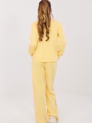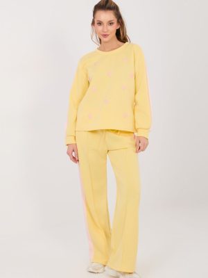 Αυτό το γυναικείο σετ φόρμας, που αποτελείται από ένα φούτερ και παντελόνια, είναι η ιδανική πρόταση για καθημερινή χρήση για γυναίκες που εκτιμούν την άνεση, την ελευθερία κινήσεων και τη μοντέρνα, κατ’αποκοπή στυλ. Το μαλακό ύφασμα τύπου βουτύρου είναι εξαιρετικά απαλό και ευχάριστο στην αφή, γεγονός που καθιστά το σετ ιδανικό τόσο για χαλάρωση στο σπίτι όσο και για καθημερινές εξόδους. Το φούτερ με μακριά μανίκια και λωρίδες έχει διακοσμηθεί με μια διακριτική απεικόνιση καρδιών στο μπροστινό μέρος, που προσθέτει σε όλο το σύνολο μια γυναικεία και νεανική αίσθηση. Οι φαρδιές αεροφωτογραφίες των παντελονιών με τις μοντέρνες λωρίδες οπτικά λεπταίνουν τη σιλουέτα, ενώ η ψηλή μέση τονίζει υπέροχα τη μέση και προσφέρει άνεση κατά τη διάρκεια της φόρεσης. Η ρυθμιζόμενη μέση με κορδόνια επιτρέπει την ιδανική εφαρμογή, ενώ οι πλαϊνές τσέπες αυξάνουν τη λειτουργικότητα του σετ. Είναι ένα σετ φόρμας που συνδυάζει την άνεση με την μοντέρνα εμφάνιση. Ιδανικό για βόλτες, ψώνια, ταξίδια ή ήσυχες μέρες στο σπίτι, κάθε φορά που θέλεις να νιώθεις άνετα και κομψά ταυτόχρονα.