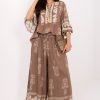 Κομψό σετ που αποτελείται από μπλούζα και μακρύ παντελόνι. Κοντή μπλούζα χωρίς μανίκια, με δέσιμο στην πλάτη. Μακρύ παντελόνι με ψηλή μέση, που κλείνει με καλυμμένο φερμουάρ. Ένα τέλειο σετ για πολλές περιστάσεις.