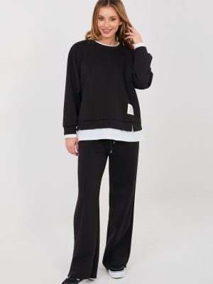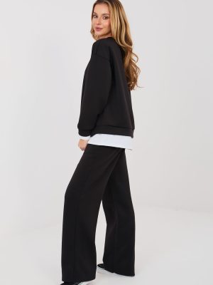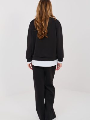 Η ολοκληρωμένη φόρμα σε casual στυλ είναι η ιδανική επιλογή για καθημερινή χρήση για τις γυναίκες που εκτιμούν την άνεση και το σύγχρονο μίνιμαλ. Το λείο σχέδιο τονίζει τον καθολικό χαρακτήρα του συνόλου, χάρη στο οποίο αποδεικνύεται θαυμάσιο τόσο κατά τη διάρκεια καθημερινών εξόδων όσο και στο σπίτι. Κατασκευασμένο από υψηλής ποιότητας μείγμα πολυεστέρα, βισκόζης και ελαστάνης, το σύνολο παρέχει άνεση, ελαστικότητα και ευχάριστη προσαρμογή στη σιλουέτα. Το υλικό είναι μαλακό, ανθεκτικό και ανθεκτικό στις τσακίσεις, γεγονός που εξασφαλίζει ότι το σύνολο διατηρεί την αισθητική του εμφάνιση για μεγάλο χρονικό διάστημα. Το φούτερ με μακριά μανίκια έχει τελειώματα σε αντίθεση που προσδίδουν στη συνολική εμφάνιση μια μοντέρνα χαρακτήρα. Ένα επιπλέον στοιχείο είναι η εφαρμοστή ετικέτα που είναι τοποθετημένη στο μπροστινό μέρος, αριστερά στο κάτω μέρος, τονίζοντας το σύγχρονο στυλ του συνόλου. Το παντελόνι με μακριά μήκη και ίσια πόδια τονίζουν όμορφα τη σιλουέτα και προσφέρουν άνεση στους χρήστες. Στη μέση υπάρχουν ραβδώσεις για δέσιμο, που επιτρέπουν τέλεια προσαρμογή, ενώ οι πλαϊνές τσέπες προσθέτουν λειτουργικότητα στο σύνολο. Είναι ένα στιλάτο και πρακτικό σύνολο που συνδυάζει άνεση με διαχρονική απλότητα.