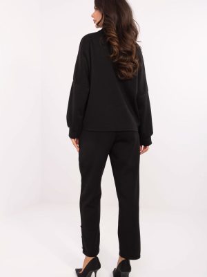 Το γυναικείο σύνολο σε κασual στυλ είναι η ιδανική πρόταση για καθημερινή χρήση για γυναίκες που εκτιμούν την άνεση και την υποtle εγγενή κομψότητα. Ραμμένο από μαλακό, ελαστικό υλικό τύπου βουτύρου (βισκόζη με πρόσθετο ελαστάν), διακρίνεται για την εξαιρετική του λεπτότητα και την ευχαρίστηση στην αφή. Η μπλούζα κλείνει με κουμπί και έχει V λαιμόκοψη καθώς και μακριά μανίκια που προσδίδουν μια γυναικεία αίσθηση σύνολου. Το παντελόνι με ψηλή μέση διαθέτει άνετη ελαστική ταινία στη μέση, ίσιες ποδίες και πρακτικές πλαϊνές τσέπες. Στο κάτω μέρος των ποδιών και στη μέση έχουν τοποθετηθεί διακοσμητικά κουμπιά, που αποτελούν μια στυλάτη λεπτομέρεια που υπογραμμίζει τον ιδιαίτερο χαρακτήρα του σετ. Το σύνολο αυτό θα είναι μια άνετη και μοντέρνα επιλογή για καθημερινές εμφανίσεις, ομαλή, καθολική και διαχρονική.