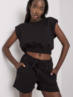Ο γυναικείος συνδυασμός που αποτελείται από μπλούζα και σορτς είναι η ιδανική πρόταση για καθημερινή χρήση και αθλητικές εμφανίσεις. Το λείο, ομοιόμορφο υλικό προσδίδει συνολικά έναν μινιμαλιστικό, σύγχρονο χαρακτήρα. Η κοντή μπλούζα με στρογγυλή λαιμόκοψη και ενσωματωμένες επιθέσεις στους ώμους τονίζει κομψά την σιλουέτα, προσθέτοντας δομή σ’ αυτήν. Η έλλειψη μανικιών εξασφαλίζει ελευθερία κινήσεων και άνεση τις θερμότερες ημέρες. Τα σορτς με απλή γραμμή και κανονική μέση διαθέτουν πλάγιες, ενσωματωμένες τσέπες καθώς και πρακτικά κορδόνια στην μέση που επιτρέπουν την ατομική προσαρμογή. Ο συνδυασμός κατασκευάζεται από μείγμα βαμβακιού, πολυεστέρα και ελαστάνης, συνδυάζοντας τη φυσική απαλότητα με την ευκαμψία και τη διάρκεια του υλικού.