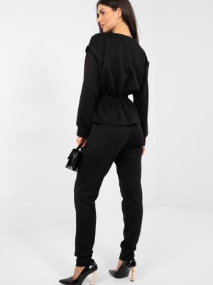 Στυλάτη γυναικεία στολή που αποτελείται από μπλούζα και παντελόνι, ιδανική για καθημερινή χρήση αλλά και για δουλειά σε λιγότερο επίσημο στυλ. Ο casual χαρακτήρας του σετ συνδυάζει άνεση με μοντέρνο, μινιμαλιστικό σχεδιασμό. Το μοντέλο είναι κατασκευασμένο από υψηλής ποιότητας μείγμα πολυεστέρα, βισκόζης και ελαστάνης, με αποτέλεσμα το ύφασμα να είναι μαλακό, ελαστικό και ευχάριστο στην wear. Ο λείας ύφασμα αναδεικνύει το καθολικό στυλ του σετ και διευκολύνει τη δημιουργία ποικιλόμορφων στυλιστικών επιλογών. Η μπλούζα με μακριά μανίκια και κλασικό, στρογγυλό λαιμό παρέχει άνεση και διαχρονική εμφάνιση. Οι πτυχώσεις στη μέση προσθέτουν ελαφρότητα και υπογραμμίζουν διακριτικά τη σιλουέτα. Το παντελόνι με ψηλή μέση και ελαστική ζώνη εγγυάται άνετη εφαρμογή. Οι μακριές ποδιές που τελειώνουν με ρίγες προσφέρουν αθλητική νότα, ενώ οι πλευρικές τσέπες αυξάνουν τη λειτουργικότητα. Είναι ένα πρακτικό και στυλάτο σετ, που θα αποδειχθεί χρήσιμο τόσο κατά τις καθημερινές υποχρεώσεις όσο και στη δουλειά, προσφέροντας άνεση για όλη την ημέρα. Το ύφασμα είναι όπως το βούτυρο, μαλακό, λεπτό και εξαιρετικά ευχάριστο στην αφή.
