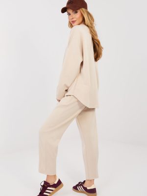 Ο γυναικείος αθλητικός συνδυασμός, ο οποίος αποτελείται από φούτερ και παντελόνι, είναι η ιδανική πρόταση για καθημερινές casual εμφανίσεις, συνδυάζοντας άνεση με μινιμαλιστικό σχεδιασμό. Η ομαλή γραμμή καθιστά το σύνολο καθολικό και είναι εξαιρετικά κατάλληλο τόσο για το σπίτι όσο και για βόλτες στην πόλη ή περιπάτους. Ο συνδυασμός είναι κατασκευασμένος από υλικά υψηλής ποιότητας μείγματος πολυεστέρα, βισκόζης και ελαστάνης. Το ύφασμα τύπου βούτυρο είναι εξαιρετικά μαλακό, λεπτό και πολύ ευχάριστο στην αφή, παρέχοντας μέγιστη άνεση κατά την χρήση. Το φούτερ με μακριά μανίκια και κλασικό, στρογγυλό λαιμόκοψη διαθέτει μια διακριτική ετικέτα τοποθετημένη στο κάτω μέρος μπροστά από την αριστερή πλευρά, προσθέτοντας μια μοντέρνα αίσθηση στο σύνολο. Το παντελόνι με μακρύ μήκος και στενές κνήμες προσαρμόζεται άψογα στη σιλουέτα. Η υψηλή μέση και οι κορδόνες που δένουν στη μέση επιτρέπουν την τέλεια προσαρμογή, ενώ οι πλαϊνές, ενσωματωμένες τσέπες αυξάνουν τη λειτουργικότητα του συνόλου.