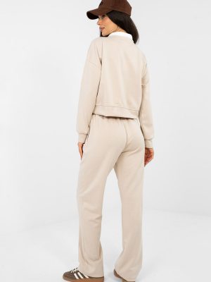Η πλήρης φόρμα που αποτελείται από μια μπλούζα και παντελόνια είναι μια άνετη πρόταση για καθημερινές στιλιστικές επιλογές σε casual στυλ. Η κοντύτερη από την τυπική μπλούζα με μακριά μανίκια και γιακά δίνει σε όλη τη σύνθεση μια μοντέρνα αίσθηση, ενώ οι κεντημένες επιγραφές μπροστά αποτελούν μια στιλάτη διακοσμητική πινελιά. Τα παντελόνια με μακριές, ίσιες γραμμές και ψηλή μέση προσφέρουν άνεση στην χρήση και ελευθερία κινήσεων. Στη μέση έχει χρησιμοποιηθεί ένα κορδόνι που επιτρέπει την ατομική ρύθμιση, ενώ οι πλαϊνές εισχωρητές τσέπες αυξάνουν τη λειτουργικότητα του μοντέλου. Η φόρμα έχει κατασκευαστεί από ένα συνδυασμό πολυεστέρα, ελαστάνης και βισκόζης, γεγονός που την καθιστά μαλακή, ελαστική και ευχάριστη στην χρήση. Είναι η ιδανική επιλογή για κάθε μέρα, τόσο για χαλάρωση στο σπίτι, όσο και για ανεπίσημες εξόδους.