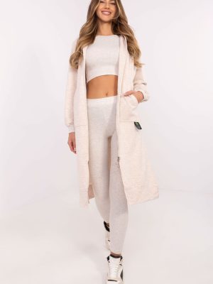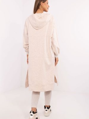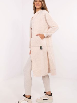 Το γυναικείο σετ που αποτελείται από φούτερ, μπλούζα και κολάν είναι ένας αρμονικός συνδυασμός casual και σπορ στυλ. Δημιουργημένο για καθημερινή άνεση και δραστηριότητα, είναι ιδανικό τόσο για προπόνηση όσο και για χαλάρωση. Το φούτερ με το εκτεταμένο κόψιμο αποτελεί μια πρακτική λύση για τις πιο κρύες ημέρες. Με φερμουάρ και εξοπλισμένη με ολισθηρές τσέπες, προσφέρει άνεση και λειτουργικότητα. Κατασκευασμένη από μείγμα βαμβακιού, πολυεστέρα και ελαστάνης, συνδυάζει την απαλότητα με την ελαστικότητα. Το μακρύ μανίκι και η κουκούλα προστατεύουν περαιτέρω από τον αέρα και το κρύο. Η μπλούζα με στρογγυλή λαιμόκοψη είναι απλή αλλά ευέλικτη, ταιριάζοντας απόλυτα με ολόκληρο το σύνολο. Η σύνθεσή της από βαμβάκι και ελαστάνη εγγυάται αναπνοή και άνεση στη χρήση. Το κολάν με τα κωνικά πόδια και την ψηλή μέση τονίζει τη σιλουέτα, ενώ επιτρέπει πλήρη ελευθερία κινήσεων. Κατασκευασμένο από βαμβάκι και ελαστάνη, χαρακτηρίζεται από ελαστικότητα και ανθεκτικότητα. Η ραβδωτή δομή του υφάσματος τους προσδίδει έναν μοναδικό χαρακτήρα. Ο συνολικός σχεδιασμός, ο οποίος διατηρείται σε ομαλό μοτίβο, ταιριάζει απόλυτα με την καθημερινή σπορ εμφάνιση, προσφέροντας ταυτόχρονα στυλ και μέγιστη άνεση.