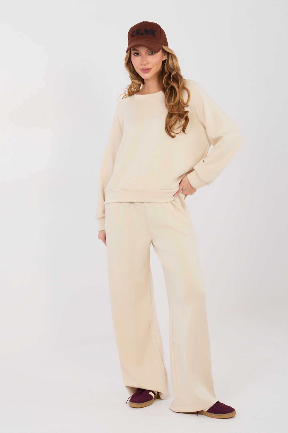 Γυναικεία φόρμα κατασκευασμένη από εξαιρετικά μαλακό ύφασμα τύπου βουτύρου είναι ο ιδανικός συνδυασμός άνεσης και στυλ σε καθημερινή βάση. Το ύφασμα από μείγμα βισκόζης, πολυεστέρα και ελαστάνης είναι εξαιρετικά λεπτό, ελαστικό και ευχάριστο στην αφή, γεγονός που καθιστά το σετ κατάλληλο τόσο για το σπίτι όσο και για εξόδους στην πόλη. Το σετ αποτελείται από μπλούζα με χαλαρή, casual γραμμή και παντελόνια με ψηλή μέση, όπου η ραμμένη ελαστική μέση εγγυάται τέλεια εφαρμογή στη σιλουέτα. Οι φαρδιές γραμμές των παντελονιών προσδίδουν ελαφρότητα και μοντέρνα εμφάνιση, ενώ οι πλαϊνές, κρυφές τσέπες υπογραμμίζουν τον πρακτικό χαρακτήρα του σετ.