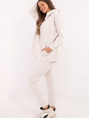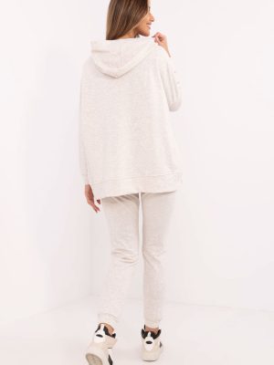 Το γυναικείο σετ φόρμας είναι ο τέλειος συνδυασμός άνεσης και στυλ, ιδανικό για καθημερινές δραστηριότητες. Κατασκευασμένο από μαλακό μείγμα βαμβακιού/πολυεστέρα, προσφέρει άνετη εφαρμογή και ανθεκτικό ύφασμα. Το φούτερ έχει κλασικό, casual κόψιμο με μακριά μανίκια που καταλήγουν σε μανσέτες με ραβδώσεις. Υπάρχει μια πρακτική τσέπη καγκουρό στο μπροστινό μέρος, η οποία προσθέτει μια σπορ πινελιά και είναι ιδανική για την αποθήκευση μικρών αντικειμένων. Ο απαλός σχεδιασμός του φούτερ το καθιστά ευέλικτο και εύκολο στο καθημερινό στυλ. Το παντελόνι ξεχωρίζει με την ψηλόμεση σιλουέτα που τονίζει τη σιλουέτα και τα πόδια με κορδόνια για τέλεια εφαρμογή. Οι πλαϊνές ολισθαίνουσες τσέπες είναι ένα πρακτικό χαρακτηριστικό που προσθέτει στη λειτουργικότητα του παντελονιού. Αυτό το σετ είναι η τέλεια επιλογή για τις γυναίκες που εκτιμούν την άνεση και τη μοντέρνα καθημερινή εμφάνιση. Η απαλή υφή και ο ήπιος σχεδιασμός καθιστούν το σετ κατάλληλο για κάθε περιστασιακή περίσταση.