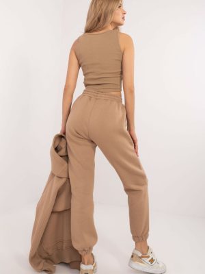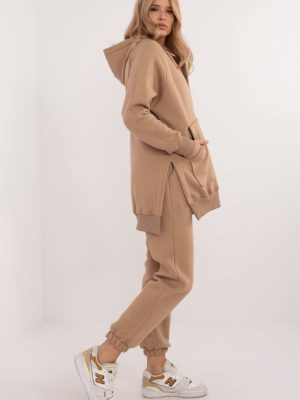 Ένα μονωμένο γυναικείο σετ casual στυλ, ιδανικό για τις πιο κρύες ημέρες και τις καθημερινές εξόδους, αποτελείται από ένα T-shirt, ένα φούτερ και ένα παντελόνι. Το σετ διακρίνεται από ένα μελανζέ μοτίβο που προσθέτει μια μοναδική πινελιά. Κατασκευασμένο κυρίως από βαμβάκι, προσφέρει άνεση και ζεστασιά, ιδανικό για τις φθινοπωρινές και χειμερινές ημέρες. Το παντελόνι έχει μακριά πόδια με ραβδωτά τελειώματα και ψηλή γραμμή που τονίζει τη σιλουέτα και εγγυάται άνετη εφαρμογή. Υπάρχει μέση με κορδόνι για τέλεια εφαρμογή, ενώ οι πλαϊνές τσέπες που μπαίνουν στο παντελόνι είναι μια πρακτική λύση για μικρά αντικείμενα. Το μακρυμάνικο φούτερ κλείνει στη μέση με πιέτες, γεγονός που προσθέτει πρωτοτυπία και καθιστά εύκολη τη χρήση του. Διαθέτει επίσης κουκούλα και μια μεγάλη τσέπη καγκουρό, η οποία προσθέτει μια σπορ πινελιά και επιπλέον λειτουργικότητα. Ολοκληρώνεται με ένα κλασικό T-shirt, δημιουργώντας ένα άνετο και κομψό σύνολο, ιδανικό για καθημερινό styling τις πιο κρύες μέρες.