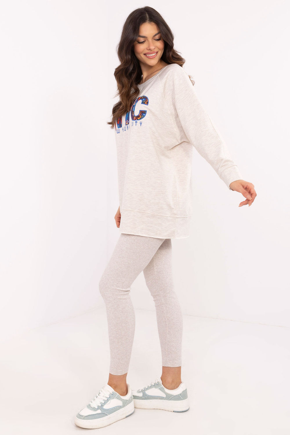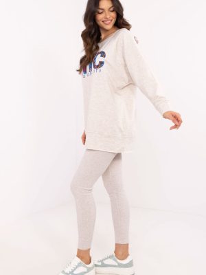 Το γυναικείο σετ που αποτελείται από φούτερ και κολάν είναι ο τέλειος συνδυασμός άνεσης και στυλ. Η μπλούζα έχει ένα τύπωμα στο μπροστινό μέρος, το οποίο της προσδίδει έναν μοναδικό χαρακτήρα και τονίζει το μοντέρνο σχεδιασμό. Κατασκευασμένο από μείγμα βαμβακιού υψηλής ποιότητας, πολυεστέρα και ελαστάνης, προσφέρει άνεση και ανθεκτικότητα. Το κολάν διακρίνεται για την ψηλή μέση του, η οποία τονίζει τέλεια τη μέση και εξασφαλίζει άνεση κατά τη διάρκεια των καθημερινών δραστηριοτήτων. Τα κωνικά πόδια προσφέρουν τέλεια εφαρμογή, ενώ το ύφασμα με ραβδώσεις προσθέτει διακριτική υφή και μοντέρνα εμφάνιση. Το σετ είναι ιδανικό για καθημερινές εξόδους, βόλτες ή στιγμές χαλάρωσης στο σπίτι. Ο συνδυασμός καθολικού στυλ και λειτουργικότητας το καθιστά μια εξαιρετική επιλογή για όλες τις εποχές.