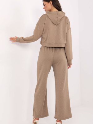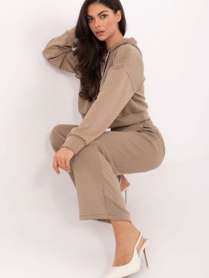 Αυτό το γυναικείο σετ φόρμας συνδυάζει κομψότητα και άνεση, ιδανικό για καθημερινά casual σύνολα. Το σετ αποτελείται από μια φούτερ με κουκούλα και κορδόνια, καθώς και παντελόνια με ψηλή μέση και ραμμένη ελαστική ζώνη, δημιουργώντας μια άνετη και στιλάτη εμφάνιση. Κατασκευασμένο από μείγμα βισκόζης και πολυεστέρα, το σύνολο είναι ευχάριστο στην αφή, ελαστικό και προσφέρει ελευθερία κινήσεων. Ολόκληρη η επιφάνεια του υφάσματος είναι διακοσμημένη με εντυπωσιακή εφαρμογή με τζετ, που προσθέτει στο σετ μια διακριτική λάμψη και κομψότητα. Τα παντελόνια με φαρδιές, μακριές ποδοι και πλαινές, ενσωματωμένες τσέπες αυξάνουν την άνεση χρήσης, ενώ το μακρύ μανίκι της φούτερ και η κουκούλα με κορδόνια ολοκληρώνουν τον λειτουργικό σχεδιασμό. Είναι η ιδανική επιλογή για γυναίκες που θέλουν να συνδυάσουν την άνεση της φόρμας με μια κομψή εμφάνιση στα καθημερινά τους σύνολα.