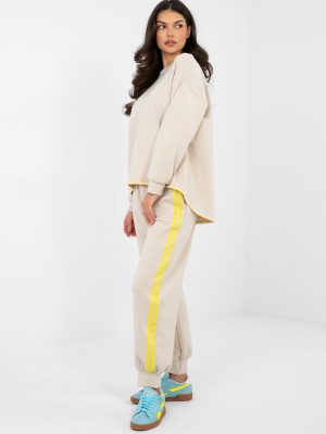 Ένα στυλάτο σύνολο φόρμας που αποτελείται από φούτερ και παντελόνι είναι ιδανική πρόταση για καθημερινή χρήση για άτομα που εκτιμούν την άνεση με στυλ. Κατασκευασμένο από υψηλής ποιότητας μείγμα πολυεστέρα, βισκόζης και ελαστάνης, το ύφασμα είναι απαλό, ελαστικό και ευχάριστο στην αφή, προσφέροντας άνεση φορεματός όλη την ημέρα. Το φούτερ με κλασικό, στρογγυλό λαιμό και μακριά μανίκια ταιριάζει τέλεια στο καθημερινό στυλ. Το απλό σχέδιο δίνει στο σύνολο έναν καθολικό χαρακτήρα, έτσι ώστε το σύνολο να μπορεί εύκολα να προσαρμοστεί σε διάφορα αξεσουάρ. Το παντελόνι με ψηλή μέση διαθέτει πρακτική ζώνη στη μέση που επιτρέπει ατομική προσαρμογή. Το μοντέλο με μακριά παντελόνια που τελειώνει με λάστιχα προσφέρει άνεση και αθλητική εμφάνιση. Οι πλευρικές, κρυφές τσέπες αυξάνουν τη λειτουργικότητα, ενώ οι μοντέρνοι ρίγες στα πλάγια των παντελονιών προσθέτουν μια δυναμική και σύγχρονη αίσθηση στο σύνολο. Αυτή η επιλογή είναι εξαιρετική για καθημερινές εξόδους, βόλτες ή χαλάρωση στην άνεση του σπιτιού, συνδυάζοντας άνεση και στυλ σε ένα μόνο σύνολο.
