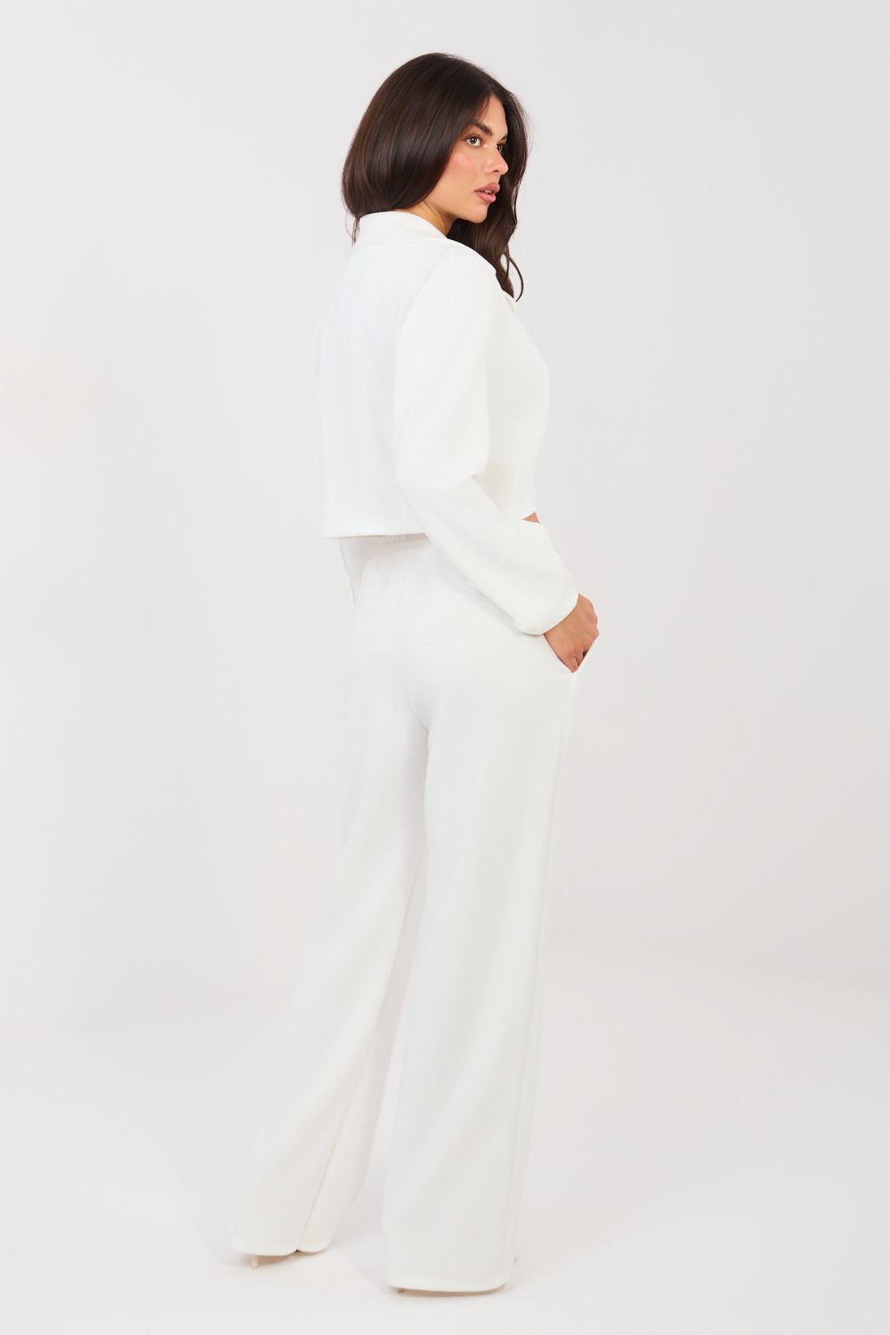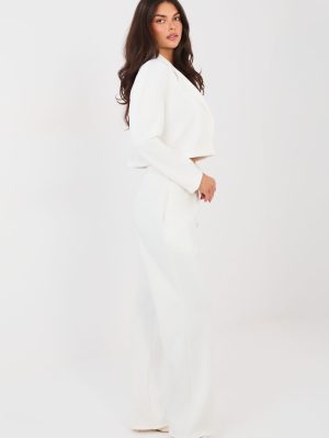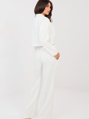 Στυλάτη φόρμα: σακάκι και παντελόνι που συνδυάζει την κομψότητα με την καθημερινή άνεση. Ραμμένο από ιδιαίτερα ευχάριστο υλικό τύπου βούτυρο, μαλακό, απαλό και λείο, εξασφαλίζει μέγιστη άνεση κατά τη διάρκεια της χρήσης και τέλεια εφαρμογή στη σιλουέτα. Το σακάκι με καπιτονέ πέτα και γιακά, κλείνει με κουμπιά, προσδίδει στο σύνολο σύγχρονο, casual χαρακτήρα. Το μακρύ μανίκι διακοσμημένο με κουμπιά αποτελεί στυλική λεπτομέρεια που υπογραμμίζει την προσεγμένη φινέτσα. Το παντελόνι σε ψηλή μέση, με μακριές, ίσιες γραμμές και ζώνη που δένει, εγγυάται άνεση και ελευθερία κινήσεων. Το μοντέλο διαθέτει πλευρικές, ανοικτές τσέπες, που αυξάνουν τη λειτουργικότητα του συνόλου. Το ομοιόμορφο σχέδιο και η προσεκτικά επιλεγμένη μίξη πολυεστέρα, βισκόζης και ελαστάνης διασφαλίζουν ότι η φόρμα θα ταιριάξει τέλεια τόσο σε καθημερινές στυλιστικές προτάσεις όσο και για δουλειά με κομψό, άνετο στυλ. Είναι ιδανική πρόταση για γυναίκες που εκτιμούν το στυλ, την άνεση και την πολυλειτουργικότητα σε ένα μόνο σύνολο.