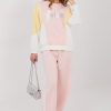 Ένα στιλάτο σετ φόρμας σε καθημερινό στυλ είναι η ιδανική πρόταση για καθημερινή χρήση. Το άνετο, αλλά και μοντέρνο σύνολο αποτελείται από μια μπλούζα με μακριά μανίκια και ένα παντελόνι με φαρδιά καμπάνα, δημιουργώντας μια άνετη και σύγχρονη εμφάνιση. Η μπλούζα με στρογγυλή λαιμόκοψη έχει διακοσμηθεί με μια εντυπωσιακή επιγραφή μπροστά, που προσδίδει χαρακτήρα στο σύνολο. Επιπλέον πλεονέκτημα είναι οι διακοσμητικές ρίγες στα μανίκια, που τονίζουν τον αθλητικό, δυναμικό στυλ του μοντέλου. Το παντελόνι με ψηλόμεση κατασκευή σχηματίζει όμορφα τη σιλουέτα και εξασφαλίζει άνεση κατά τη χρήση. Στη μέση έχει ραμμένο ένα ελαστικό λάστιχο, χάρη στο οποίο το παντελόνι προσαρμόζεται τέλεια στη μέση. Οι φαρδιές καμπάνες προσδίδουν στο σύνολο μια άνετη, μοντέρνα εμφάνιση, ενώ οι πλαϊνές τσέπες αυξάνουν τη λειτουργικότητα του σετ. Το σύνολο κατασκευάζεται από μια ευχάριστη στην αφή μείξη πολυεστέρα, βισκόζης και ελαστάνης, το υλικό είναι μαλακό, ελαστικό και ανθεκτικό στις ζάρες, γεγονός που το καθιστά ιδανικό για καθημερινή χρήση. Ιδανική επιλογή για γυναίκες που εκτιμούν την άνεση, την ελευθερία και την κομψή εμφάνιση στις καθημερινές τους εμφανίσεις.