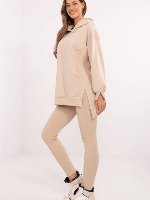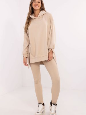 Το γυναικείο σετ που αποτελείται από μακρύ φούτερ και κολάν είναι ιδανική επιλογή για γυναίκες που εκτιμούν την άνεση και το στυλ στα καθημερινά τους ρούχα. Διατηρώντας έναν casual χαρακτήρα, θα είναι ιδανικό για μια βόλτα, για ψώνια ή για χαλάρωση στο σπίτι. Το φούτερ έχει εκτεταμένη πλάτη για μοντέρνα εμφάνιση και επιπλέον άνεση. Κατασκευασμένο από μείγμα βαμβακιού και πολυεστέρα, προσφέρει ευχάριστη αίσθηση και ανθεκτικότητα. Με κουκούλα και μακριά μανίκια, είναι ιδανική για να κρατάει το κρύο μακριά τις πιο κρύες μέρες. Το κολάν, με κωνικά πόδια και ψηλό ύψος, τονίζει τη σιλουέτα, ενώ επιτρέπει την ελευθερία κινήσεων. Κατασκευασμένο από βαμβάκι με προσθήκη ελαστάνης, εφαρμόζει τέλεια στο σώμα. Το ύφασμα με ραβδώσεις προσδίδει χαρακτήρα και τα ξεχωρίζει από άλλα μοντέλα. Όλα σε ομοιόμορφο μονόχρωμο μοτίβο, που σας επιτρέπει να συνδυάζετε εύκολα τα αξεσουάρ και να δημιουργείτε μια συνεκτική καθημερινή εμφάνιση.