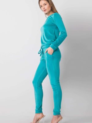Σετ από βελούδο που αποτελείται από μπλούζα και παντελόνι. Μπλούζα με μακριά μανίκια και στρογγυλή λαιμόκοψη. Μακρύ παντελόνι με γραβάτα στη μέση και τσέπες.