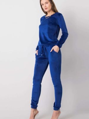 Σετ από βελούδο που αποτελείται από μπλούζα και παντελόνι. Μπλούζα με μακριά μανίκια και στρογγυλή λαιμόκοψη. Μακρύ παντελόνι με γραβάτα στη μέση και τσέπες.