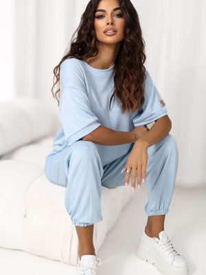 Ο γυναικείος αθλητικός συνδυασμός που αποτελείται από φούτερ και παντελόνι είναι η ιδανική πρόταση για καθημερινή χρήση για γυναίκες που εκτιμούν την άνεση και το σύγχρονο στυλ. Η απλή γραμμή του του δίνει ένα καθολικό χαρακτήρα, κάνοντάς το κατάλληλο τόσο για οικιακές στυλιστικές προτάσεις όσο και για εξόδους στην πόλη. Το φούτερ με κοντά μανίκια και κλασικό, στρογγυλό ντεκολτέ προσφέρει άνεση στην χρήση και ελευθερία κινήσεων. Ένα επιπλέον στοιχείο είναι το μπατζάκι στο μανίκι, που δίνει στο σύνολο μια μοντέρνα αίσθηση. Το παντελόνι με μακριά μπούστα που τελειώνει με ρυθμιζόμενους ιμάντες εναρμονίζεται άψογα με τη σιλουέτα. Το μοντέλο διαθέτει πρακτικές, πλευρικές τσέπες που αυξάνουν τη λειτουργικότητα. Ο συνδυασμός είναι κατασκευασμένος από ευχάριστο υλικό που συνδυάζει βισκόζη και ελαστάνη, διασφαλίζοντας άνεση, ελαστικότητα και ιδανική προσαρμογή. Το μοντέλο είναι χωρίς κούμπωμα, κάτι που τονίζει ακόμη περισσότερο την καθημερινή, άνετη φύση του.