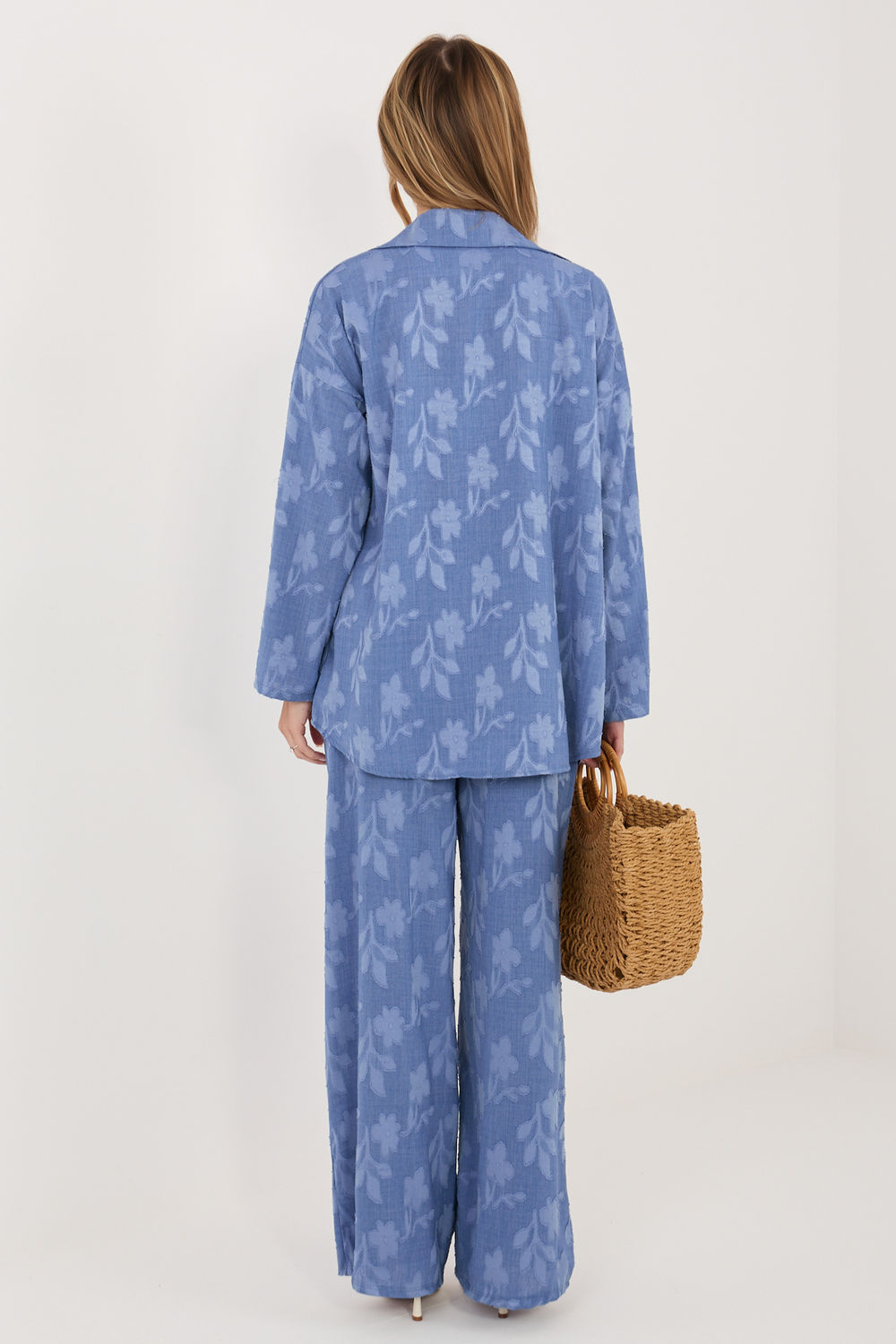 Γυναικείο σετ που αποτελείται από πουκάμισο και παντελόνι είναι μια κομψή και άνετη πρόταση για καθημερινές εμφανίσεις. Διακρίνεται από την ποικιλόμορφη υφή του υφάσματος, που προσδίδει στο σύνολο σύγχρονο και πρωτότυπο χαρακτήρα. Το πουκάμισο με μακριά μανίκια, κλασικό γιακά και κουμπιά παρουσιάζεται κομψό, ενώ ταυτόχρονα χαλαρό, γεγονός που το καθιστά ιδανικό τόσο για casual όσο και για πιο επιμελημένες στυλιστικές επιλογές. Το παντελόνι με μακριά μπατζάκια είναι εξοπλισμένο με ελαστική μέση με ενσωματωμένο λάστιχο, εξασφαλίζοντας άνετη εφαρμογή στο σώμα και άνεση κατά τη διάρκεια όλης της ημέρας. Επιπλέον, διαθέτει πρακτικές, πλάγιες τσέπες. Το σετ κατασκευασμένο από μαλακό και ευχάριστο στην αφή μείγμα βισκόζης και ελαστάνης εγγυάται ελαφρότητα, ελαστικότητα και ελευθερία κινήσεων. Είναι η ιδανική επιλογή για γυναίκες που εκτιμούν την άνεση σε συνδυασμό με μια μοντέρνα εμφάνιση.