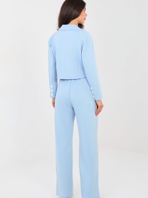 Στυλάτο σετ φόρμας: σακάκι και παντελόνι, που συνδυάζει την κομψότητα με την καθημερινή άνεση. Ραμμένο από μια εξαιρετικά ευχάριστη στην αφή ύφασμα τύπου βούτυρο, μαλακό, λεπτό και λείο, προσφέρει μέγιστη άνεση κατά τη διάρκεια της χρήσης και τέλεια εφαρμογή στη σιλουέτα. Το σακάκι με τα καπιτονάτα πέτα και τον γιακά, κλείνει με κουμπιά, προσδίδει σε όλο το σύνολο μια μοντέρνα, χαλαρή αίσθηση. Το μακρύ μανίκι, διακοσμημένο με κουμπιά, αποτελεί μια στυλάτη λεπτομέρεια που υπογραμμίζει την προσεγμένη τελείωσή του. Το παντελόνι με τη ψηλή μέση, τις μακριές, ίσιες κνήμες και τη δέσιμο στη μέση εγγυώνται άνεση και ελευθερία κινήσεων. Το μοντέλο διαθέτει πλαϊνές τσέπες που εισάγονται, οι οποίες αυξάνουν τη λειτουργικότητα του σετ. Το λείο σχέδιο και η προσεκτικά επιλεγμένη μείξη πολυεστέρα, βισκόζης και ελαστάνης κάνουν το σύνολο ιδανικό τόσο για καθημερινές εμφανίσεις όσο και για τη δουλειά, σε μια κομψή και άνετη εκδοχή. Είναι η ιδανική πρόταση για τις γυναίκες που εκτιμούν το στυλ, την άνεση και την πολυμορφία σε ένα σετ.