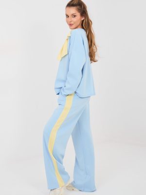 Ένα στυλάτο γυναικείο σετ φόρμας σε καθημερινό στιλ είναι η ιδανική πρόταση για την καθημερινότητα. Η σύνθεση άνεσης με κομψές λεπτομέρειες, καθιστά το σετ ιδανικό για καθημερινές δραστηριότητες, βόλτες ή συναντήσεις σε χαλαρό στυλ. Το σετ αποτελείται από μια μπλούζα με μακριά μανίκια και κλασικό, στρογγυλό ντεκολτέ καθώς και μια μακριά παντελόνα με φαρδιές μπατζάκια. Το απλό σχέδιο υπογραμμίζει τον καθολικό χαρακτήρα του σετ, διευκολύνοντας την προσαρμογή του σε διάφορα αξεσουάρ. Η μπλούζα είναι διακοσμημένη με μια εντυπωσιακή αντίθεση φιόγκο μπροστά, που προσθέτει μια γυναικεία και υπολανθάνουσα κομψότητα στο σύνολο. Οι παντελόνες με ψηλή μέση διαμορφώνουν όμορφα τη μέση, ενώ η ελαστική ζώνη, που είναι ραμμένη στη μέση, εξασφαλίζει άνετη εφαρμογή στη σιλουέτα. Ένα επιπλέον πλεονέκτημα είναι οι πρακτικές πλευρικές τσέπες και οι λωρίδες που τρέχουν κατά μήκος των μπατζακιών, οι οποίες προσδίδουν αθλητικό χαρακτήρα και οπτικά λεπταίνουν τα πόδια. Το σετ είναι κατασκευασμένο από μια ευχάριστη στην επαφή μίξη πολυεστέρα, βισκόζης και ελαστάνης, γεγονός που το καθιστά μαλακό, ελαστικό και ανθεκτικό στις ζάρες, εξασφαλίζοντας άνεση κατά τη διάρκεια όλης της ημέρας. Είναι ένα άνετο και γυναικείο σετ που συνδυάζει την αθλητική ελευθερία με κομψές λεπτομέρειες.