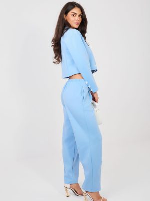 Ένα κομψό γυναικείο σύνολο που αποτελείται από κοντό σακάκι και μακριά παντελόνα είναι μια εξαιρετική πρόταση για το γραφείο και για καθημερινή χρήση. Το κλασικό, λείο σχέδιο υπογραμμίζει τον διαχρονικό χαρακτήρα του συνόλου, ενώ το προσεκτικά επιλεγμένο ύφασμα (πολυεστέρας, βισκόζη, ελαστάνη) εξασφαλίζει άνεση, ανθεκτικότητα και αισθητική εμφάνιση καθόλη τη διάρκεια της ημέρας. Το κοντό σακάκι με μακριά μανίκια έχει φινίρισμα με εκτεθειτά πέτα, τα οποία του προσδίδουν κομψότητα και επαγγελματικό χαρακτήρα. Το διπλό κούμπωμα με κουμπιά προσθέτει κομψότητα και υπογραμμίζει διακριτικά τη σιλουέτα. Οι παντελόνες ψηλής μέσης αναδεικνύουν όμορφα τη μέση, ενώ οι στενές μπατζάκια αδυνατίζουν τα πόδια. Το μοντέλο χωρίς κλασικό κούμπωμα διαθέτει ελαστική ζώνη πίσω, εξασφαλίζοντας άνεση και ιδανική εφαρμογή. Επιπλέον πλεονέκτημα είναι οι πρακτικές, πλάγιες τσέπες. Το ύφασμα είναι απαλό, λεπτό και εξαιρετικά ευχάριστο στην αφή. Αυτό είναι ένα καθολικό σύνολο που συνδυάζει την κομψότητα με την άνεση, ιδανικό για το γραφείο, επαγγελματικές συναντήσεις και στυλάτες καθημερινές εξόδους.