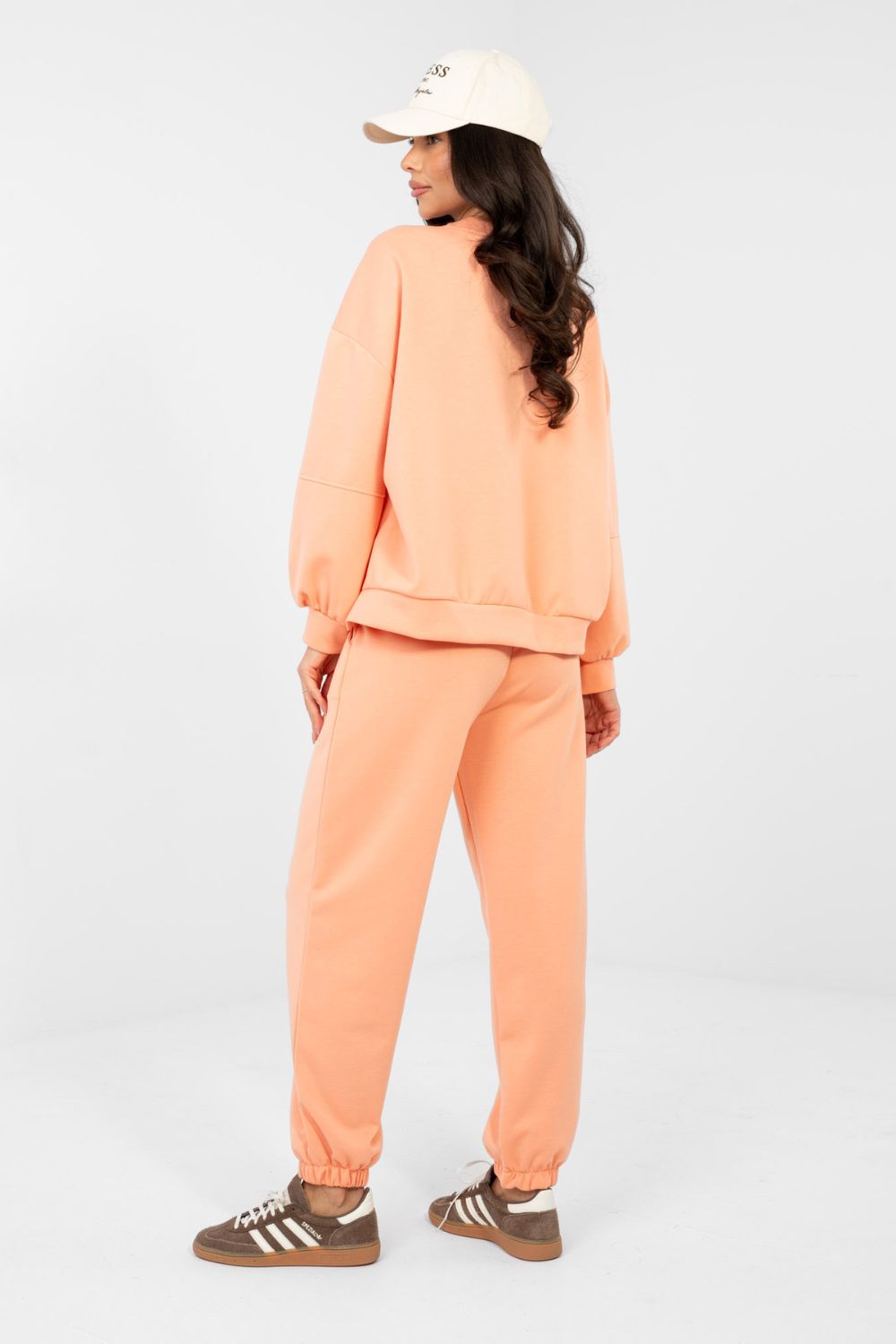 Ένα στιλάτο σετ φόρμας με casual εμφάνιση είναι η ιδανική πρόταση για καθημερινές στυλιστικές επιλογές. Ο ομαλός σχεδιασμός του του δίνει έναν καθολικό χαρακτήρα, γεγονός που το καθιστά εξαιρετικό είτε κατά τη διάρκεια της χαλάρωσης, είτε για βόλτες, είτε σε αστική εμφάνιση. Η μπλούζα με μακριά μανίκια και στρογγυλή λαιμόκοψη προσφέρει άνεση και διαχρονική εμφάνιση. Ένα επιπλέον πλεονέκτημα είναι η διακριτική ετικέτα που τοποθετείται στο αριστερό μανίκι, η οποία προσθέτει μια μοντέρνα πινελιά. Τα παντελόνια με μακριά ποδένια που καταλήγουν σε λάστιχο προσαρμόζονται τέλεια στη σιλουέτα. Η ψηλή μέση τονίζει τη μέση και αυξάνει την άνεση κατά την χρήση, ενώ οι πλαινές τσέπες προσθέτουν λειτουργικότητα. Το σετ αποτελείται από ένα μαλακό και ελαστικό μείγμα βισκόζης και ελαστάνης, που εγγυάται ευχάριστη αίσθηση στο σώμα, ελευθερία κινήσεων και τέλεια προσαρμογή στη σιλουέτα. Είναι ένα άνετο και στιλάτο σετ για καθημερινή χρήση. Το ύφασμα τύπου βουτύρου είναι μαλακό, λεπτό και ιδιαίτερα ευχάριστο στην αφή.