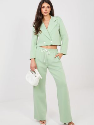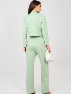 Στυλάτος συνδυασμός φόρμας: σακάκι και παντελόνι, που συνδυάζει την κομψότητα με την καθημερινή άνεση. Ραμμένο από πολύ ευχάριστο στην αφή υλικό τύπου βούτυρο, μαλακό, λεπτό και λείο, εξασφαλίζει τη μέγιστη άνεση κατά τη διάρκεια της φθοράς και εξαιρετική εφαρμογή στη σιλουέτα. Το σακάκι με πέτο και γιακά, κλείνει με κουμπιά, δίνει στο σύνολο έναν σύγχρονο, casual χαρακτήρα. Το μακρύ μανίκι διακοσμημένο με κουμπιά αποτελεί στυλάτη λεπτομέρεια που τονίζει την επιμελημένη φινέτσα. Το παντελόνι με ψηλή μέση, μακρά, ίσια πόδια και ζώνη που δένει εξασφαλίζει άνεση και ελευθερία κινήσεων. Το μοντέλο διαθέτει πλαϊνές, κρυφές τσέπες που αυξάνουν τη λειτουργικότητα του συνδυασμού. Η λεία επιφάνεια και η προσεκτικά επιλεγμένη μίξη πολυεστέρα, βισκόζης και ελαστάνης διασφαλίζουν ότι ο συνδυασμός τα πάει εξαιρετικά τόσο σε καθημερινές εμφανίσεις όσο και στην εργασία σε μια κομψή, άνετη εκδοχή. Είναι η ιδανική πρόταση για γυναίκες που εκτιμούν το στυλ, την άνεση και την ευκολία σε ένα και μόνο σύνολο.