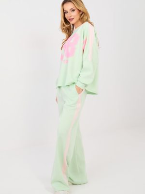 Γυναικείο σετ φόρμας που αποτελείται από μπλούζα και παντελόνι είναι μια άνετη και στιλάτη πρόταση για καθημερινές εμφανίσεις σε casual στυλ. Το μοντέλο είναι ιδανικό τόσο για καθημερινή χρήση όσο και για βόλτες ή ξεκούραση, συνδυάζοντας τη μοντέρνα εμφάνιση με την μέγιστη άνεση. Οι διακοσμητικές επιγραφές και αριθμοί που είναι τοποθετημένοι στο μπροστινό μέρος της μπλούζας και στα μανίκια προσδίδουν στη συνολική εμφάνιση έναν αθλητικό, σύγχρονο χαρακτήρα. Το σετ είναι κατασκευασμένο από υψηλής ποιότητας μείγμα πολυεστέρα, βισκόζης και ελαστάνης, που εξασφαλίζει απαλότητα, ελαστικότητα και καλή εφαρμογή στο σώμα. Η μπλούζα έχει μακρύ μανίκι και κλασικό, στρογγυλό ντεκολτέ. Το παντελόνι με μακριές, φαρδιές ποδιές και ψηλή μέση εξασφαλίζει άνεση και ελευθερία κινήσεων. Πρακτικές, πλαϊνές τσέπες ενισχύουν τη λειτουργικότητα του συνόλου. Επιπλέον πλεονέκτημα είναι οι λωρίδες στα παντελόνια και τα μανίκια, που τονίζουν τον αθλητικό στυλ και οπτικά λεπταίνουν τη σιλουέτα.