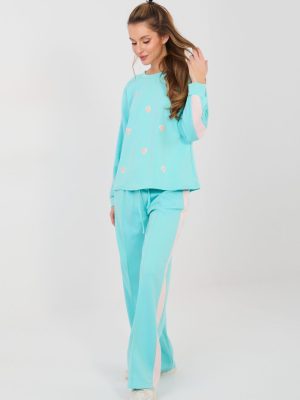 Αυτό το γυναικείο σύνολο φούτερ που αποτελείται από μπλούζα και παντελόνια είναι η ιδανική πρόταση για καθημερινή χρήση για γυναίκες που εκτιμούν την άνεση, την ελευθερία κινήσεων και τη μοντέρνα, casual στυλ. Το μαλακό υλικό τύπου βουτύρου είναι εξαιρετικά απαλό και ευχάριστο στην αφή, καθιστώντας το σύνολο εξαιρετικά κατάλληλο τόσο για χαλάρωση στο σπίτι όσο και για καθημερινές εξόδους. Η μπλούζα με μακριά μανίκια και λωρίδα διακοσμείται με ένα διακριτικό μοτίβο καρδιών μπροστά, το οποίο προσφέρει μια γυναικεία και κοριτσίστικη αίσθηση στο σύνολο. Οι φαρδιοί μπεζ παντελονιού με μοντέρνες λωρίδες οπτικά αδυνατίζουν τη σιλουέτα, ενώ η ψηλή μέση αναδεικνύει υπέροχα τη μέση και προσφέρει άνεση στη χρήση. Η ρυθμιζόμενη μέση με κορδόνια επιτρέπει την τέλεια προσαρμογή, ενώ οι πλαϊνές τσέπες αυξάνουν τη λειτουργικότητα του συνόλου. Αυτό είναι ένα σύνολο φούτερ που συνδυάζει άνεση με μοντέρνα εμφάνιση. Ιδανικό για βόλτες, ψώνια, ταξίδια ή χαλαρές μέρες στο σπίτι, πάντα όταν θέλεις να νιώθεις άνετα και στυλάτα ταυτόχρονα.