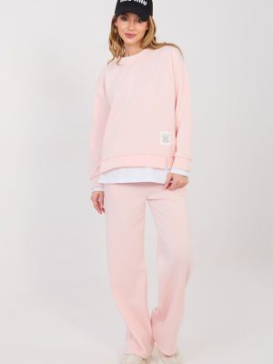 Το σετ φόρμας σε casual στυλ είναι μια εξαιρετική επιλογή για τις γυναίκες που εκτιμούν την άνεση και τον σύγχρονο μινιμαλισμό στην καθημερινότητά τους. Το απαλό σχέδιο τονίζει τον καθολικό χαρακτήρα του σετ, καθιστώντας το ιδανικό τόσο για καθημερινές εξόδους όσο και για την άνεση του σπιτιού. Κατασκευασμένο από υψηλής ποιότητας μείγμα πολυεστέρα, βισκόζης και ελαστάνης, το σετ προσφέρει άνεση, ελαστικότητα και ευχάριστη εφαρμογή στο σώμα. Το υλικό είναι μαλακό, ανθεκτικό και ανθεκτικό στις ζάρες, γεγονός που εξασφαλίζει ότι το σετ διατηρεί την αισθητική του εμφάνιση για μεγάλο χρονικό διάστημα. Η μπλούζα με μακριά μανίκια έχει τελειώματα από αντίθετα χρώματα, που προσθέτουν μια fashionable διάσταση στο σύνολο. Ένα επιπλέον στοιχείο είναι η διακόσμηση που βρίσκεται στο μέτωπο, αριστερά στο κάτω μέρος, τονίζοντας τον σύγχρονο χαρακτήρα του σετ. Το παντελόνι με μακριά πόδια και υψηλή μέση διαμορφώνει τέλεια τη σιλουέτα και προσφέρει άνεση κατά τη διάρκεια της χρήσης. Στη μέση υπάρχουν κορδόνια για δέσιμο, που επιτρέπουν την ιδανική εφαρμογή, ενώ οι πλευρικές τσέπες αυξάνουν τη λειτουργικότητα του σετ. Είναι ένα στυλάτο και πρακτικό σετ που συνδυάζει την άνεση με την διαχρονική απλότητα.