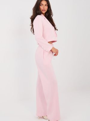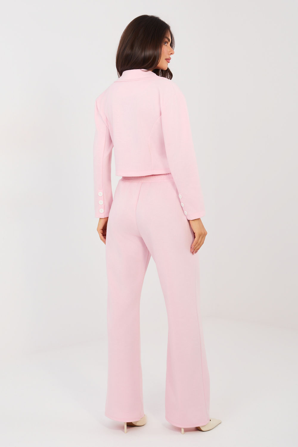 Στυλάτη αθλητική στολή: σακάκι και παντελόνι, που συνδυάζει την κομψότητα με την καθημερινή άνεση. Ραμμένο από εξαιρετικά ευχάριστο στην αφή υλικό τύπου βούτυρο, μαλακό, λεπτό και λείο, εξασφαλίζει μέγιστη άνεση κατά την εφαρμογή και τέλεια προσαρμογή στη σιλουέτα. Το σακάκι με πέτο και γιακά, κλείνει με κουμπιά, προσδίδει στο σύνολο μια μοντέρνα, casual αίσθηση. Το μακρύ μανίκι, διακοσμημένο με κουμπιά, αποτελεί μια στυλάτη λεπτομέρεια που τονίζει την προσεγμένη τελείωση. Το παντελόνι με ψηλό μέσο, μακριές, ίσιες γραμμές και δέσιμο στη μέση εγγυάται άνεση και ελευθερία κινήσεων. Το μοντέλο διαθέτει πλευρικές, ανοιχτές τσέπες, που αυξάνουν τη λειτουργικότητα του συνόλου. Το λείο σχέδιο και το προσεκτικά επιλεγμένο μείγμα πολυεστέρα, βισκόζης και ελαστάνης εξασφαλίζουν ότι το σύνολο θα είναι ιδανικό τόσο για καθημερινές στυλιστικές προτάσεις, όσο και για εργασιακούς χώρους σε μοντέρνα και άνετη εκδοχή. Είναι μια ιδανική πρόταση για γυναίκες που εκτιμούν το στυλ, την άνεση και την ευχρηστία σε ένα σύνολο.