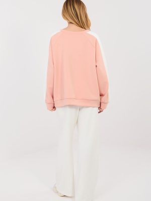 Μοντέρνα γυναικεία αθλητική σετ που αποτελείται από μπλούζα και παντελόνι, διατηρημένο σε κανονικό στυλ, ιδανικό για καθημερινή χρήση. Ιδανικό για καθημερινές δραστηριότητες, βόλτες ή χαλάρωση στο ζεστό περιβάλλον του σπιτιού. Κατασκευασμένο από υψηλής ποιότητας μίγμα πολυεστέρα, βισκόζης και ελαστάνης, το οποίο παρέχει άνεση, ελαστικότητα και καλή εφαρμογή στο σχήμα του σώματος. Η μπλούζα με μακριά μανίκια και κλασικό, στρογγυλό ντεκολτέ είναι διακοσμημένη με κείμενο στο μπροστινό μέρος, δίνοντας σε όλη την εμφάνιση σύγχρονο χαρακτήρα. Το παντελόνι με μακριά, φαρδιά πόδια και ψηλή μέση εγγυάται άνεση κατά την φθορά, ενώ οι πλευρικές τσέπες παρέχουν επιπλέον λειτουργικότητα. Οι ρίγες στα μανίκια της μπλούζας αποτελούν στυλιστική λεπτομέρεια που τονίζει το αθλητικό-αστικό στυλ.