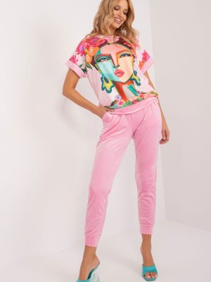 Αυτό το βελούδινο σετ είναι η ιδανική πρόταση για όσους εκτιμούν την άνεση και το στιλ καθημερινά. Αποτελείται από ένα μπλουζάκι και ένα παντελόνι, που συνθέτουν ένα αρμονικό ντουέτο casual εμφάνισης. Το μπλουζάκι, κατασκευασμένο από μαλακό πολυεστέρα, έχει έντονο τύπωμα, που του δίνει ένα ατομικό χαρακτήρα. Το μικρό του μανίκι προσθέτει ελαφρότητα και άνεση, ιδανικό για ζεστές μέρες. Το παντελόνι, σε μονόχρωμη απόχρωση, είναι μακρύ και άνετο. Το υψηλό του πασπαρτού με λάστιχα εξασφαλίζει την καλή εφαρμογή στην σιλουέτα, προσφέροντας άνεση όλη μέρα. Επιπλέον, οι πλαϊνές τσέπες αποτελούν πρακτική λεπτομέρεια, που επιτρέπει την ασφαλή αποθήκευση μικρών αντικειμένων. Ο στυλ με λάστιχο στο τελείωμα του παντελονιού δίνει χαλαρό χαρακτήρα, ενώ προσθέτει στο ντύσιμο μια αθλητική πινελιά. Με το casual στυλ του, αυτό το βελούδινο σετ θα γίνει αναπόσπαστο κομμάτι της καθημερινής σου γκαρνταρόμπας, προσθέτοντας άνεση και στιλ σε κάθε περίσταση.