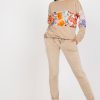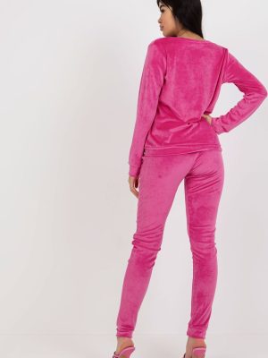 Σετ από βελούδο που αποτελείται από μπλούζα και παντελόνι. Μπλούζα με μακριά μανίκια και στρογγυλή λαιμόκοψη. Μακρύ παντελόνι με γραβάτα στη μέση και τσέπες.