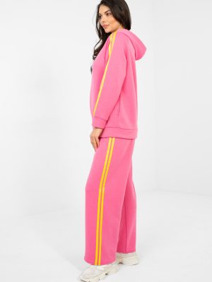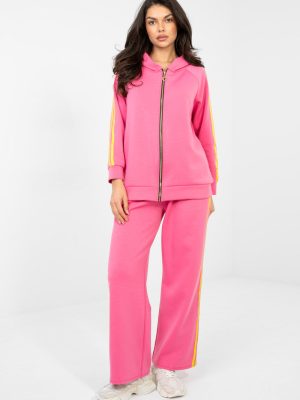 Ένα άνετο και στιλάτο γυναικείο σετ φόρμας είναι η ιδανική πρόταση για καθημερινή χρήση. Ο καζουαλ χαρακτήρας του σετ το καθιστά τέλειο για καθημερινές δραστηριότητες, περιπάτους ή χαλάρωση, συνδυάζοντας την άνεση με την μοντέρνα εμφάνιση. Το φούτερ με μακριά μανίκια διαθέτει πρακτική κουκούλα και κλείσιμο με φερμουάρ, προσφέροντας άνεση κατά τη χρήση και δυνατότητα ρύθμισης. Το μοντέλο διαθέτει πλαϊνές τσέπες, οι οποίες αυξάνουν τη λειτουργικότητα. Οι διακοσμητικές λωρίδες στα μανίκια δίνουν σε όλο το σύνολο έναν αθλητικό, δυναμικό χαρακτήρα. Το παντελόνι με ψηλή μέση και μακριές, φαρδιές μπατζάκια εγγυάται ελευθερία κινήσεων και μοντέρνα εμφάνιση. Οι λωρίδες που τρέχουν κατά μήκος των μπατζακιών υπογραμμίζουν το αθλητικό στυλ του σετ και οπτικά μακραίνουν τη σιλουέτα. Το σετ είναι κατασκευασμένο από ευχάριστο στην αφή μείγμα πολυεστέρας, βισκόζας και ελαστάνης. Το υλικό είναι ελαστικό, ανθεκτικό και ανθεκτικό στις ζαρώσεις, κάνοντάς το εξαιρετικό για καθημερινή χρήση. Ένα άνετο και μοντέρνο σετ που συνδυάζει τέλεια την αθλητική ελευθερία με το μοντέρνο στυλ. Το υλικό είναι απαλό σαν βούτυρο, μαλακό, λεπτό και εξαιρετικά ευχάριστο στην αφή.