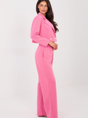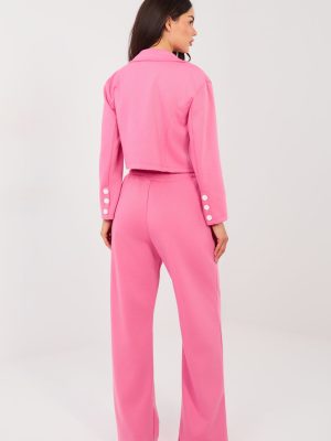 Στυλάτο σετ φόρμας: σακάκι συνδυασμένο με παντελόνι, που ενώνει την κομψότητα με την καθημερινή άνεση. Ραμμένο από εξαιρετικά ευχάριστο στην αφή ύφασμα, τύπου βούτυρο, μαλακό, λεπτό και λείο, διασφαλίζει τη μέγιστη άνεση κατά την χρήση και τέλεια εφαρμογή στη σιλουέτα. Το σακάκι με καπιτονέ γιακά και κολάρο, κλείνει με κουμπιά, προσδίδει σε όλο το σύνολο έναν μοντέρνο, καζουαλ χαρακτήρα. Το μακρύ μανίκι διακοσμημένο με κουμπιά αποτελεί στυλάτη λεπτομέρεια, που υπογραμμίζει την προσεγμένη ολοκλήρωση. Το παντελόνι με ψηλή μέση, μακριά ίσια παντελόνια και ζώνη με κορδόνι, εγγυάται άνεση και ελευθερία κινήσεων. Το μοντέλο διαθέτει πλαινές, εγκάρσιες τσέπες, που αυξάνουν τη λειτουργικότητα του σετ. Το λείο σχέδιο και η επιμελώς επιλεγμένη μίξη πολυεστέρα, βισκόζης και ελαστάνης διασφαλίζουν ότι το σετ θα λειτουργήσει άψογα τόσο στις καθημερινές στυλιστικές επιλογές, όσο και στη δουλειά με μια μοντέρνα, άνετη έκδοση. Είναι η ιδανική πρόταση για γυναίκες που εκτιμούν το στυλ, την άνεση και την ευελιξία σε ένα και μόνο σύνολο.
