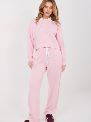 Το σετ φόρμες που αποτελείται από φούτερ και παντελόνι είναι μια άνετη πρόταση για καθημερινές εμφανίσεις σε casual στυλ. Το φούτερ, πιο κοντό από το στάνταρ, με μακριά μανίκια και γιακά, προσδίδει μια σύγχρονη αίσθηση, ενώ οι κεντημένες επιγραφές μπροστά αποτελούν μια μοντέρνα, διακοσμητική λεπτομέρεια. Τα παντελόνια με μακριά, ίσια πόδια και ψηλό μέσο προσφέρουν άνεση και ελευθερία κινήσεων. Στη μέση έχει τοποθετηθεί κορδόνι που επιτρέπει ατομική προσαρμογή, ενώ οι πλάγιες, ενσωματωμένες τσέπες αυξάνουν τη λειτουργικότητα του μοντέλου. Το σετ έχει κατασκευαστεί από συνδυασμό πολυεστέρα, ελαστάνης και βισκόζης, εξασφαλίζοντας έτσι μαλακή, ελαστική και ευχάριστη αίσθηση κατά την φθορά. Είναι η ιδανική επιλογή για καθημερινή χρήση, τόσο για χαλάρωση στο σπίτι όσο και για ανεπίσημες εξόδους.