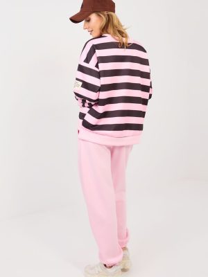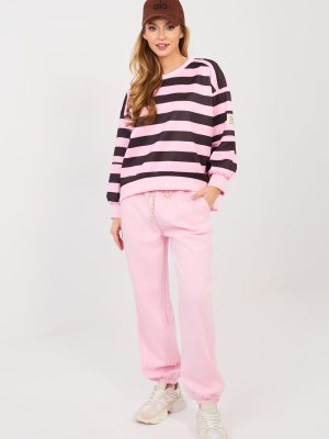 Το στυλάτο σύνολο φόρμας σε καθημερινό στυλ είναι η ιδανική πρόταση για καθημερινή χρήση. Ο συνδυασμός άνεσης και μοντέρνων λεπτομερειών το καθιστά ιδανικό για καθημερινές δραστηριότητες, περιπάτους ή χαλάρωση. Το φούτερ με μακρύ μανίκι και στρογγυλή λαιμόκοψη ξεχωρίζει με τις ρίγες στο ύφασμα, που του προσδίδουν μοντέρνο χαρακτήρα. Ένα επιπλέον χαρακτηριστικό είναι η διακριτική ετικέτα στον αριστερό μανίκι, που υπογραμμίζει τον στυλάτο χαρακτήρα του μοντέλου. Το παντελόνι με ψηλή μέση και μακριά πόδια που τελειώνουν με ελαστικές μανσέτες ταιριάζει τέλεια με τη σιλουέτα. Στη μέση υπάρχει ελαστική ζώνη και κορδόνια, που επιτρέπουν την ατομική προσαρμογή. Οι πλευρικές τσέπες προσθέτουν λειτουργικότητα στο σύνολο. Όλα έχουν κατασκευαστεί από εξαιρετικά μαλακό ύφασμα τύπου βουτύρου μείγματός βισκόζης, βαμβακιού και ελαστάνης. Το ύφασμα είναι απαλό, ελαστικό και εξαιρετικά ευχάριστο στην αφή, εξασφαλίζοντας τη μέγιστη άνεση κατά τη διάρκεια όλης της ημέρας.