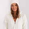 Γυναικείος χειμωνιάτικος σκούφος με γυριστό, διακοσμητικό καρό και πον-πον.