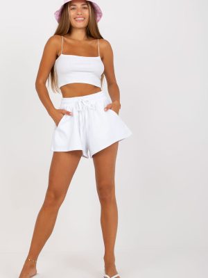 Γυναικείο κοντό σορτς με φαρδιά πόδια. Ζώνη μέσης με λάστιχο και δέσιμο, τσέπες στα πλάγια.